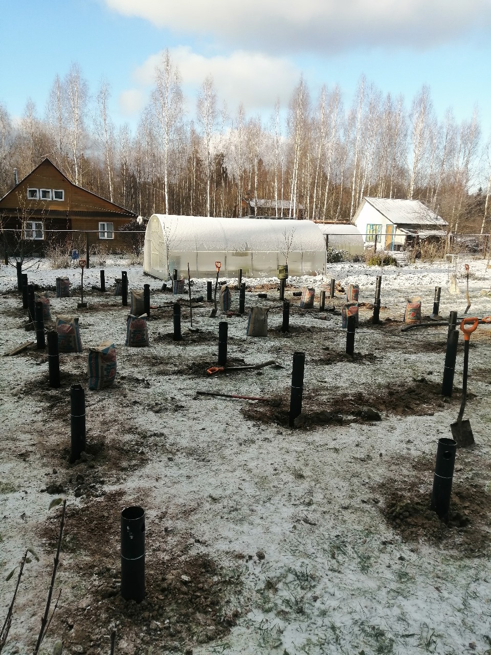 Фундамента на сваях в зимний период - 40 винтовых свай с укосинами и обвязкой швеллером