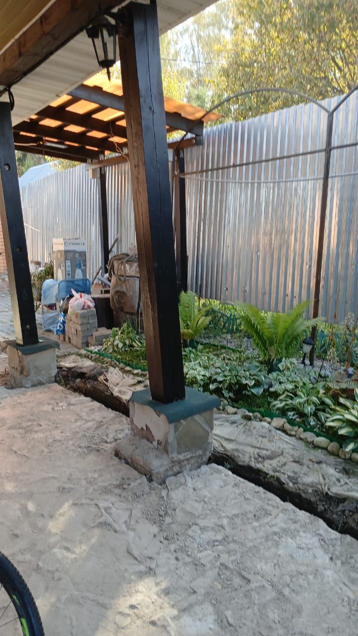 —Выдавило тумбы под опорами навеса - заменили на винтовые сваи